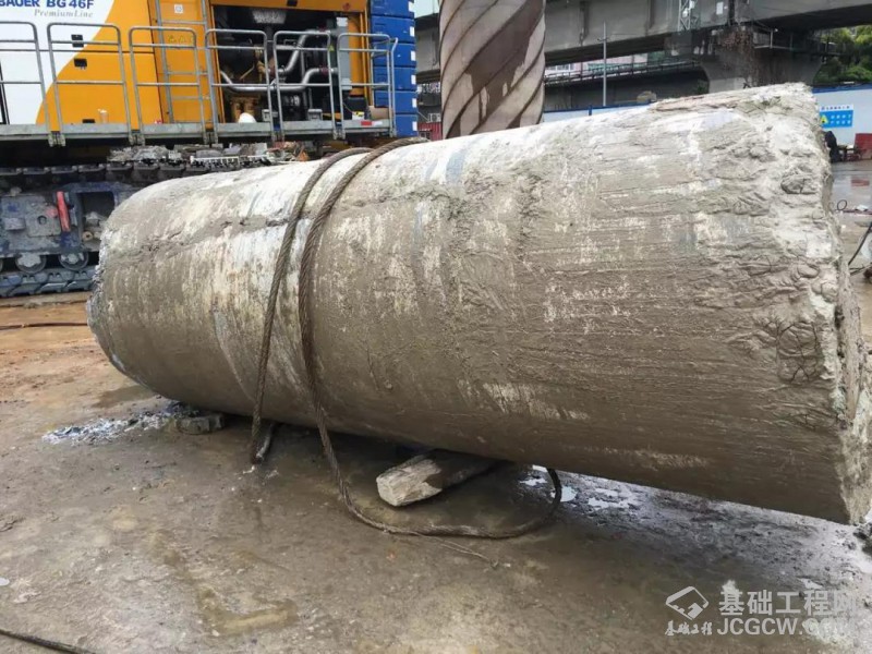 地下取出的岩芯,最大岩芯直径1.5m,长3.8m。