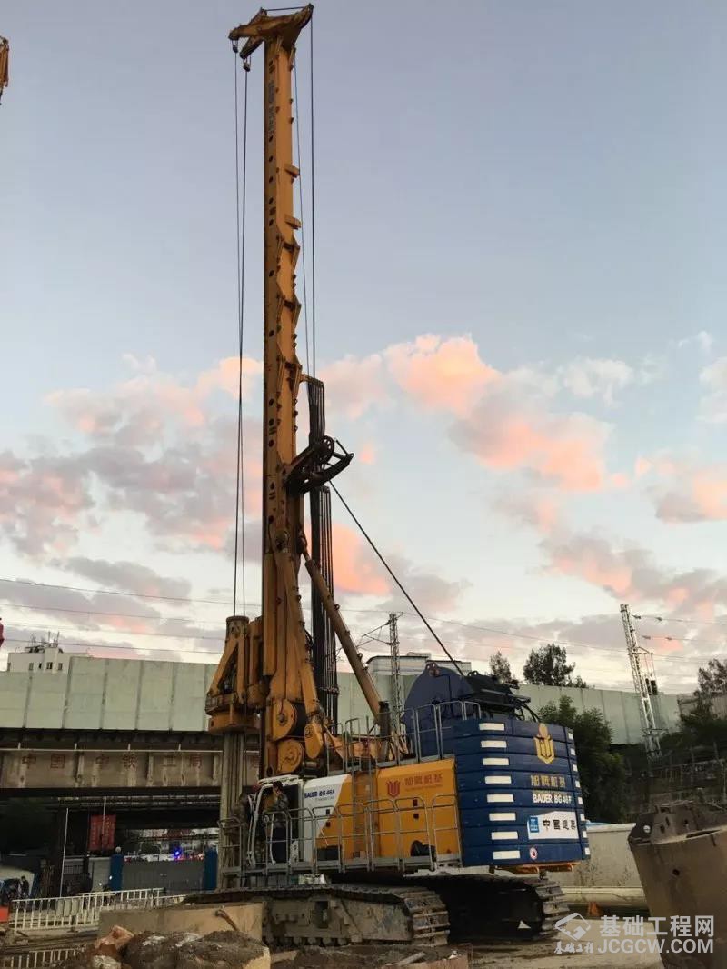 德国宝峨BG46F型旋钻钻机:最大成孔深度111.2m、最大入岩深度110m、最大成孔直径3.2m、发动机功率:570KW。