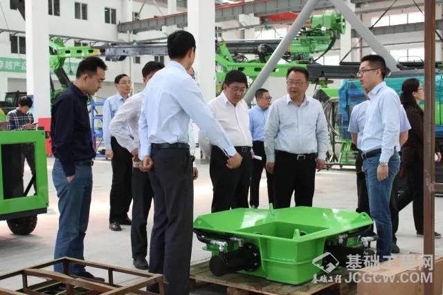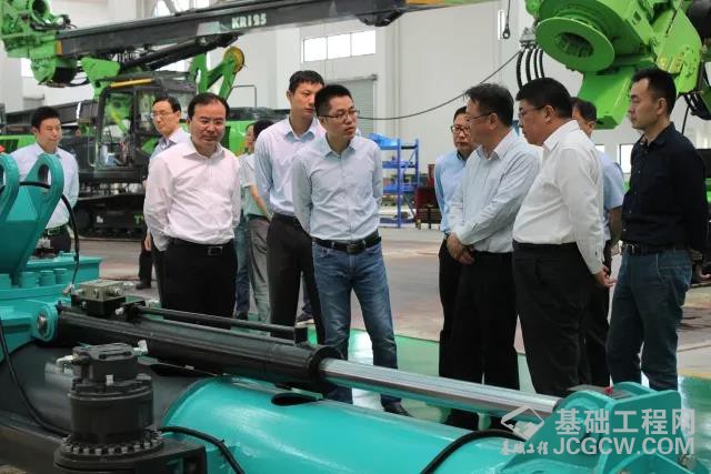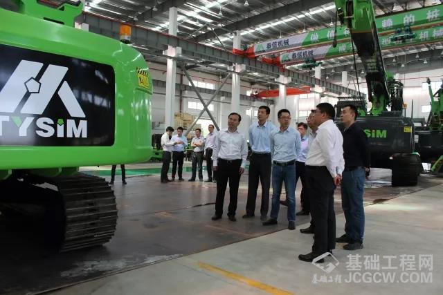 杨书记一行分别参观泰信总装、部装生产线及独立开发的全新产品模块式旋挖钻机改装线,听取泰信主要产品介绍,对泰信创新型生产经营模式表示高度赞许。