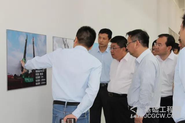 接待人员为来访领导讲解泰信产品国内外市场情况及旋挖钻机租赁业务模式,展示泰信在立足传统生产制造领域业务的同时,也注重创新业务模式的拓展,培育新产品、开拓新思路,建立起独立的先进经营管理体系和营销体系,建设专业服务队伍,打造国际知名品牌。