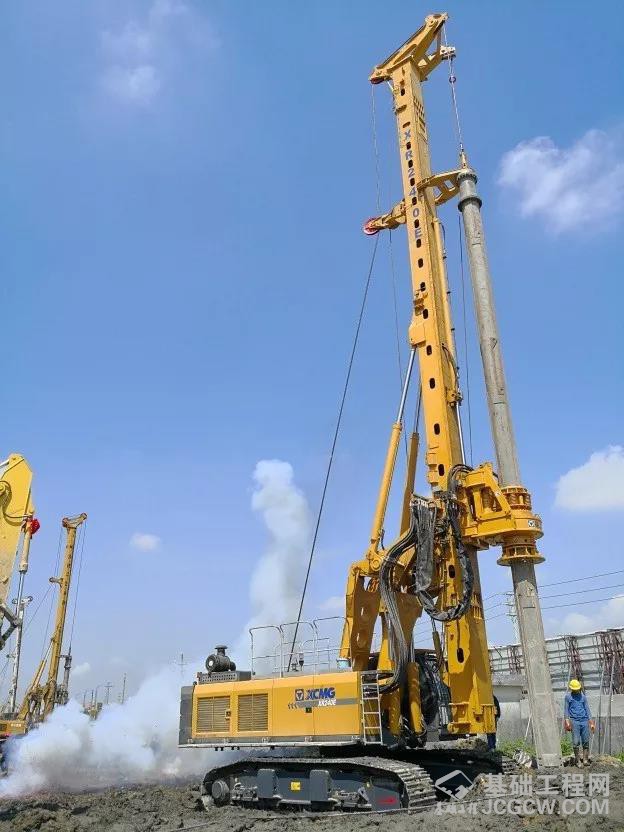 下面让我们揭秘徐工新一代E系列中等吨位旋挖钻机--首台XR240E,它成功交付于广东用户使用,自开钻以来,日均成桩4-4.5根,大大高于同工地上同行某品牌的xx25、xx280B等设备日均3-3.5根桩的业绩,其高效的施工效率、优异的结构稳定性、舒适的操作环境及明艳的外观吸引了众人的眼球,周边用户闻讯纷纷前来参观。