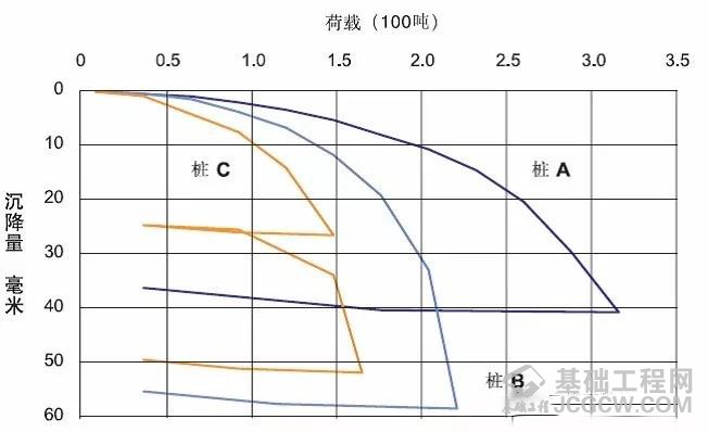 如图1,宝峨公司在工地现场采用不同成桩方式进行桩基施工,最终所得到的桩的载荷—沉降曲线对比数据。