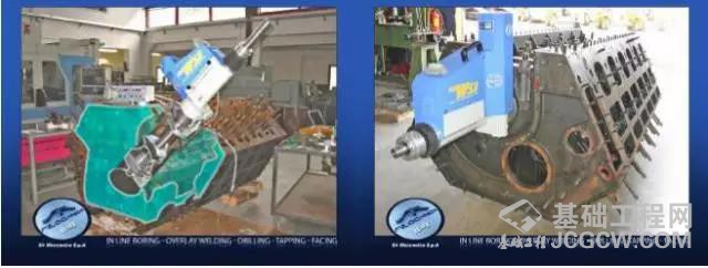 赛达(上海)传动工程有限公司独家代理意大利WS 系列便携装配式多功能数控机床及其附件非常有效解决了这一难题,它可以在施工现场,针对工程机械上述关键点的失效很轻松完成如下操作:定中心、开毛刀、自动堆焊、精密镗孔、铣端面、钻孔、攻螺纹、曲面加工等,其中可以对二个以上具有同一位置和尺寸精度的多个铰接座一次装夹一次性修复到位,对深孔零件,如油缸、石油钻杆、管道法兰等现场修复成为可能。