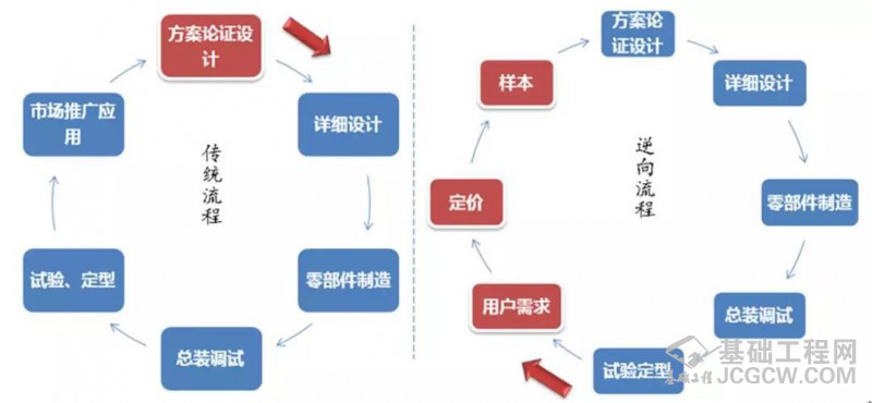 传统流程与逆向流程的对比图