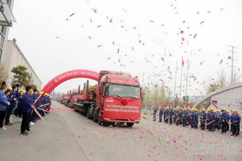2018年3月,水井钻机微创团队销售的17台徐工水井钻机批量发车