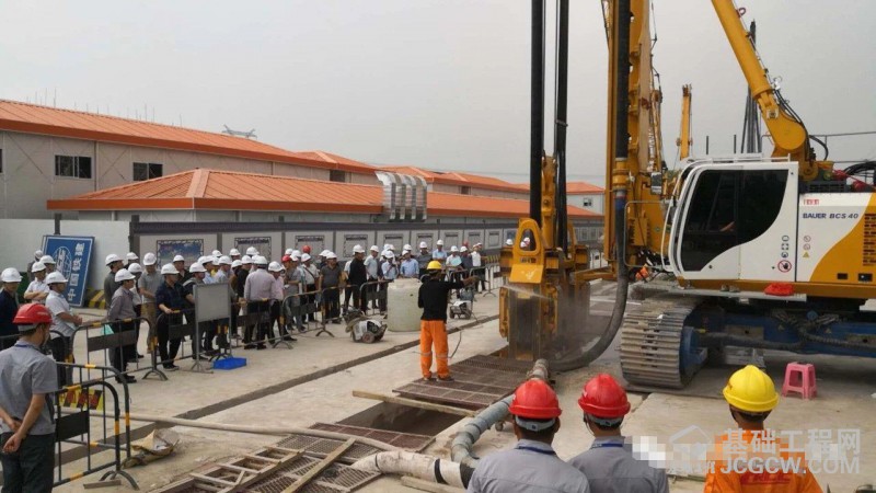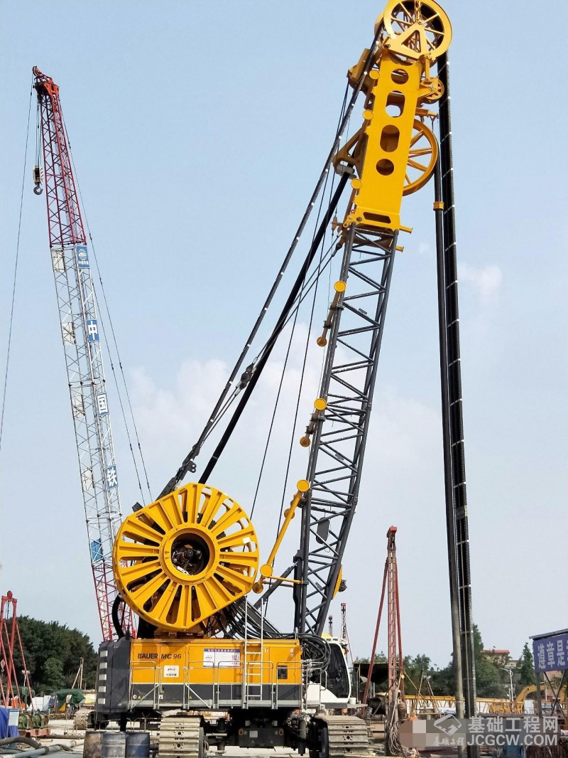图为宝峨MC 96 / BC 40、BCS 40双轮铣槽机和GB 50液压抓斗在施工现场