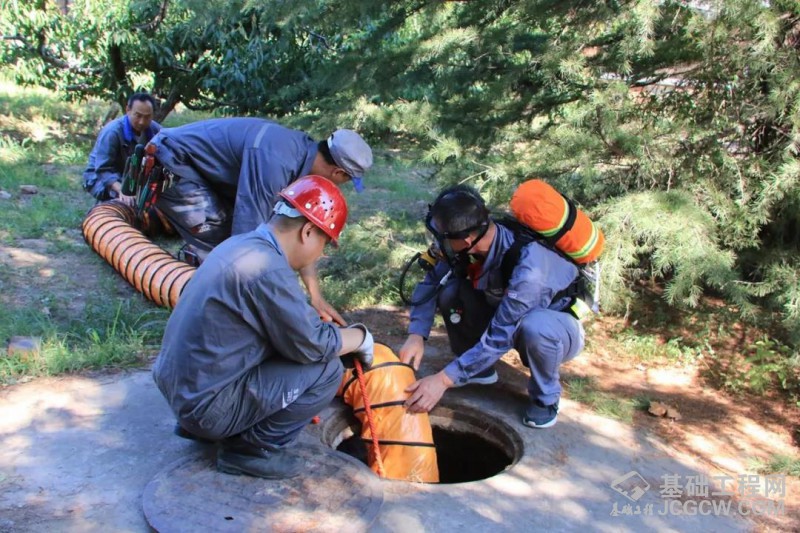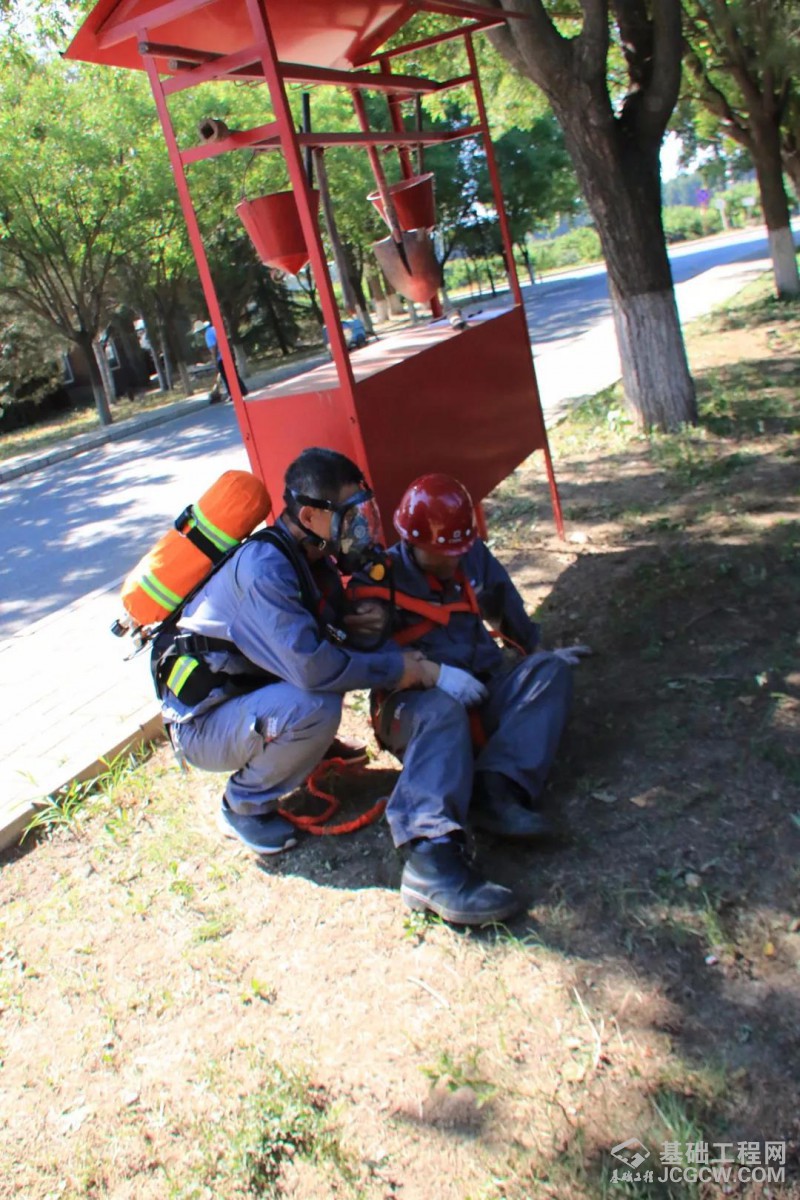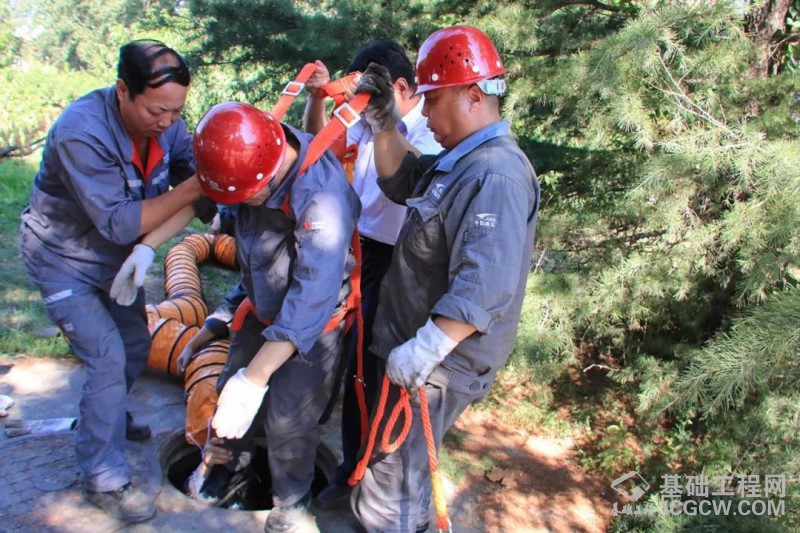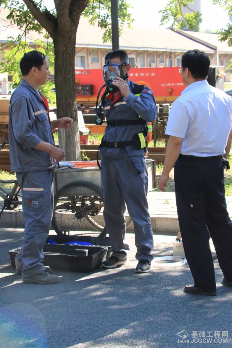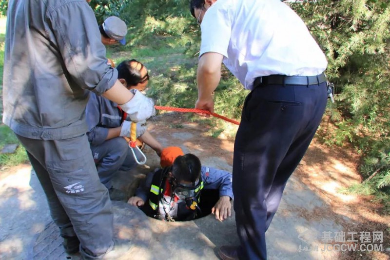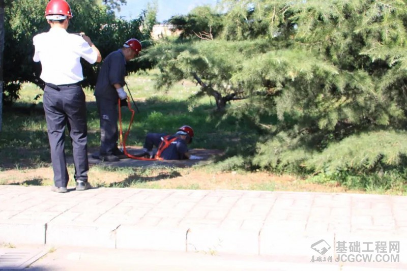 演练活动中,现场真人模拟工作井内伤员,然后由安全救援队员佩戴有限空间救援装备,下至工作井内将伤员救出。当伤员被运到地面后,救援队员马上对伤员进行医疗设备供氧和心肺复苏等救援行动。