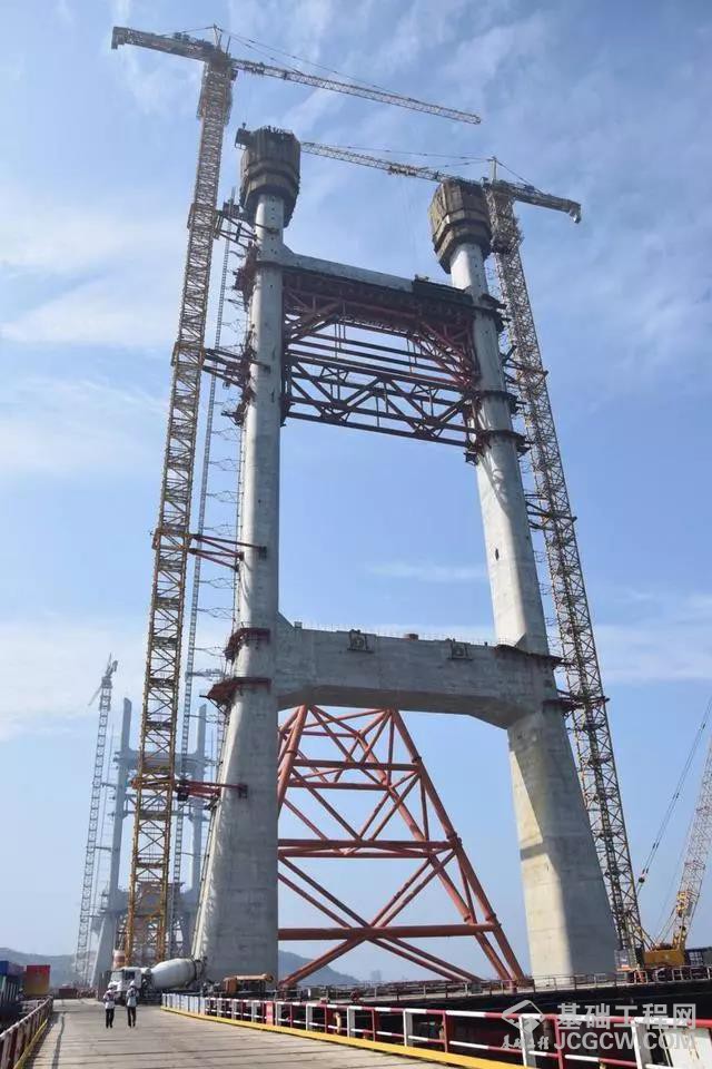 我国首座海峡公铁两用大桥主塔封顶 明年将通车