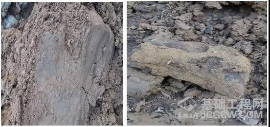 图为宝峨GB 60液压抓斗抓出的板结的砂块
