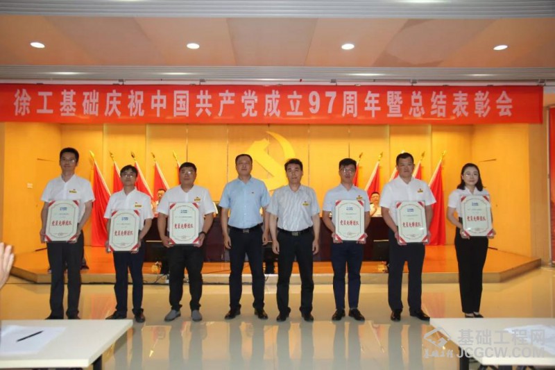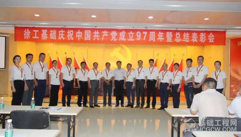 7月4日下午,徐工基础召开庆祝中国共产党成立97周年暨总结表彰会,回顾总结前一阶段的党建与思想政治工作,表彰先进、鼓舞士气,统一思想,坚定信念,明确下一阶段的工作目标和行动定位。公司领导及党员、干部,受表彰的先进集体代表和优秀个人,徐工年功章领取代表共150余人参会。
