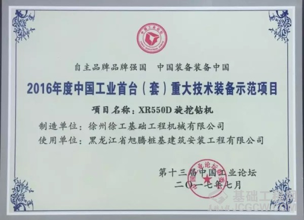 徐工XR550D旋挖钻机上市以来演绎了一段精彩传奇,先后在武汉青山大桥、广州南沙港铁路西江特大桥、赤壁长江大桥等重大工程项目中施工,无论是单打独斗还是联合施工,均以卓越的性能赢得了用户的认可,并在2017年7月获评“2016年度中国工业首台(套)重大技术装备示范项目”。