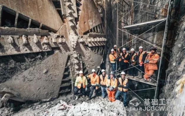 图为迪普基础公司员工庆祝盾构机的顺利贯通。