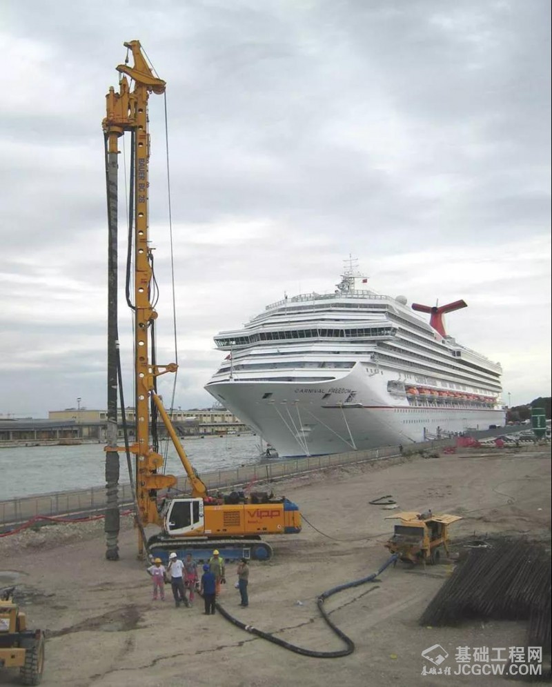 采用以上系列宝峨钻机进行施工,标准挤土桩的最大钻孔直径可达620毫米,使用钻杆和钻桅加长节时最大深度可达30.5米。使用一次性钻尖的挤土桩施工最大直径710毫米,使用钻杆和钻桅加长节时最大深度为30米。由于挤土桩单桩承载力较大、施工效率高、节约成本,因此在许多国家得到了大量的应用。