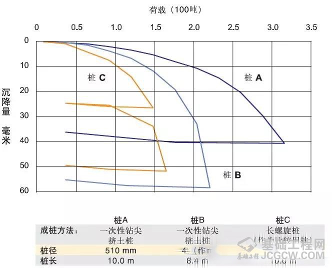 01、由于挤土桩挤密周边土体的效应,桩的侧摩擦力得到显著提升,从而增加了单桩的承载力、减少桩的沉降量,增加安全系数。在满足同等的设计荷载条件下,采用挤土桩工艺成桩,可以对桩长、桩径进行优化,从而减少工程造价。如图1,宝峨公司在工地现场采用不同成桩方式进行桩基施工,最终所得到的桩的载荷—沉降曲线对比数据。