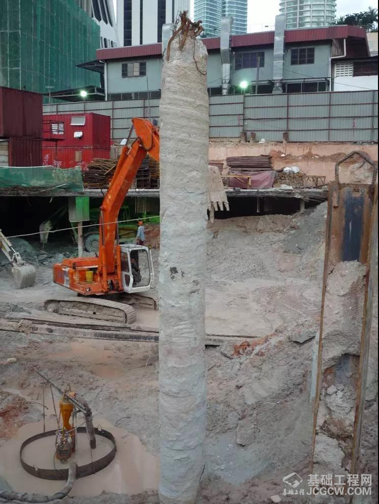 宝峨挤土桩工法应用在马来西亚吉隆坡基础桩工程项目上,开挖出来的桩基(上图)及桩底(下图)的情况。