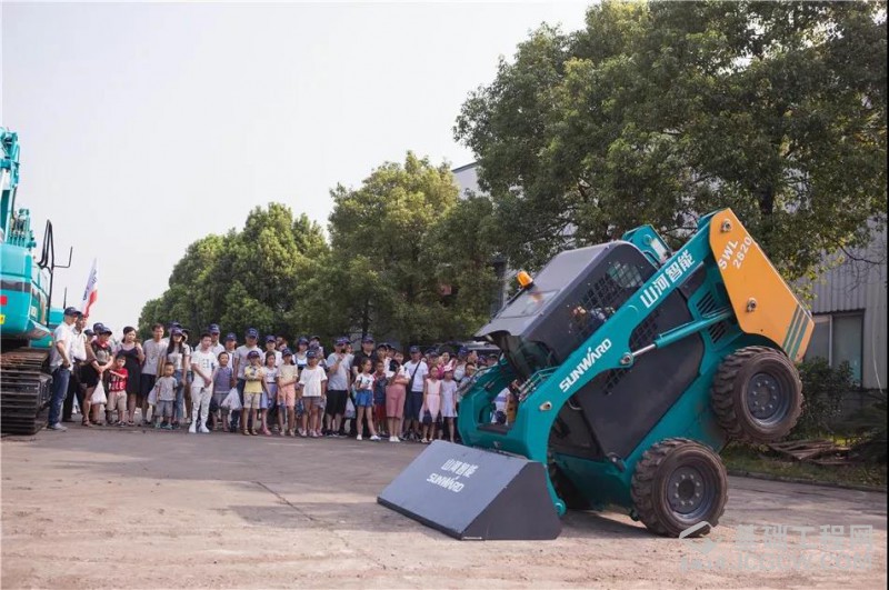 紧接着,好玩的事情就开始了!我们看到一排排由小到大排列整齐的挖机,真是太壮观了,这是我第一次看到这么多挖机。这时,一个叔叔开着名字叫做滑移装载机的机器出来了,前进、后退、“单脚独立”、旋转……我真的很想试一下,嗯,我有了第一个梦想,长大以后也要开滑移装载机,戴墨镜。