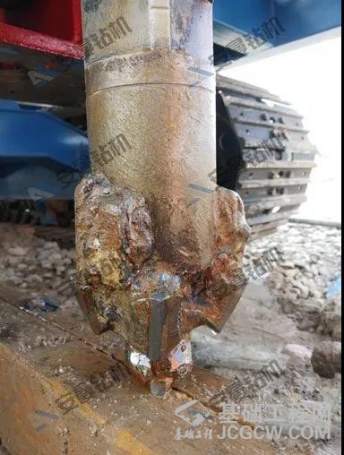 旧钻机施工情况:1天(10小时左右)成桩十根(平均六米不到)基本打到五米左右就下不去了!钻具损耗:钻头硬质合金一天一个!!