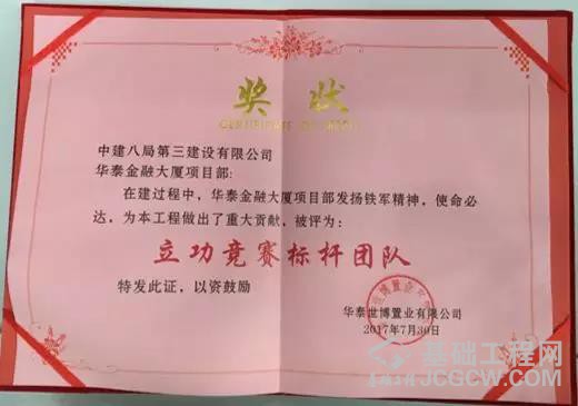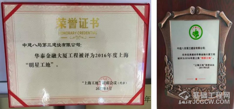 据悉华泰金融大厦项目连续两年荣获上海市“明星工地”奖。此外,项目还获得了“上海市文明工地”、LEED金级认证、上海市工程建设优秀QC成果一等奖、LEED金级认证等等荣誉!