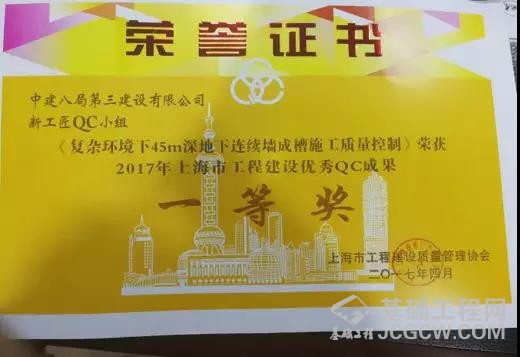 ▲上海市工程建设优秀QC成果一等奖