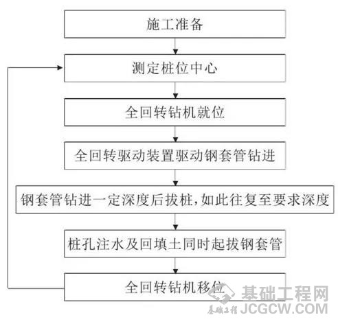 为了拔除这些障碍桩,项目部引进日本先进技术,采用全回转驱动装置夹紧钢套管进行360°回转钻进,钢套管在压力和扭矩的共同作用下压入土层,利用钢套管的护壁作用,在钢套管内进行拔桩清障,最后及时向套管内回填水及拌合水泥土料,回填的同时逐节拔除钢套管。