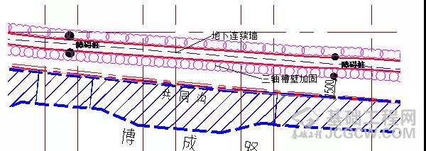 整个基坑外围采用“三轴搅拌水泥桩+地下连续墙”围护形式。