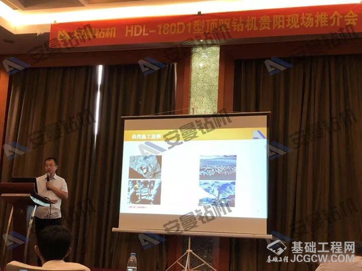 本次推介会由贵阳客户黄总、谢总倾力支持。活动开始,首先,嘉宾们亲临现场观看了HDL-180D1型顶驱锚杆钻机的使用情况,纷纷表达了对该机施工效率的肯定:施工平稳,效率很高。然后嘉宾们移步会议室,由安曼钻机的副总经理王云辰先生和营销总监刘其宁先生分别做了企业介绍和产品介绍。
