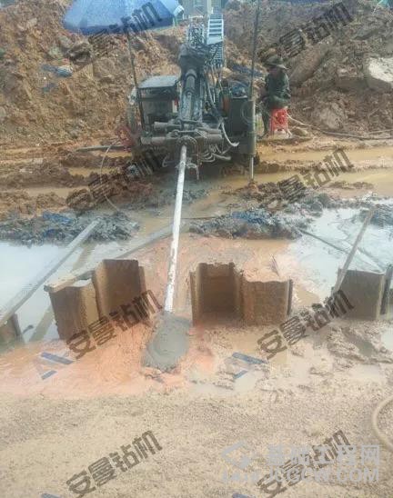 3、下锚索,锚索用钻杆带进。下到要求深度,进行补浆。约十分钟