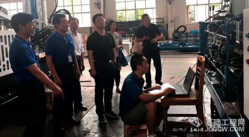 朱董事长陪同嘉宾参观了车间,并向嘉宾介绍了我公司开发的与国际技术同步的土壤及地下水取样与修复一体钻机、基础施工钻机及正在调试中的新产品。