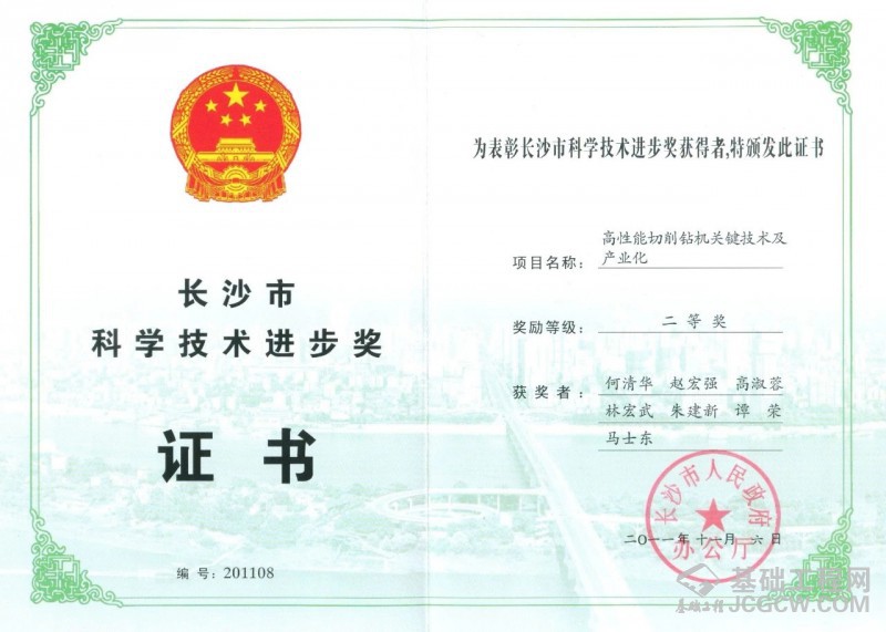 2014年,“螺旋地桩钻机研制及产业化”获长沙市科技进步三等奖;开发一体式SWDR150切削钻机。
