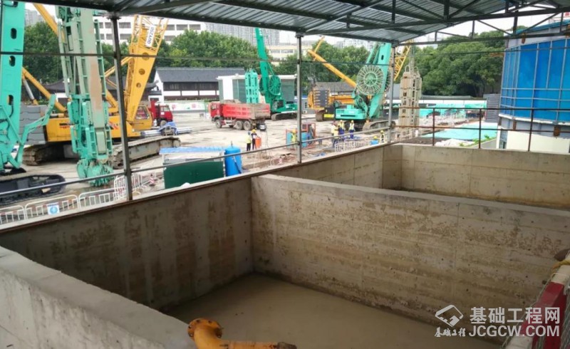 此次,南京地铁七号线-莫愁湖站由浙江土工基础工程有限公司担任施工方,车站主体基坑长160m、宽22.15m、埋深33.4~35.1m。车站主体负一、二层采用明挖顺做法,负三、四层采用盖挖逆作法施工。
