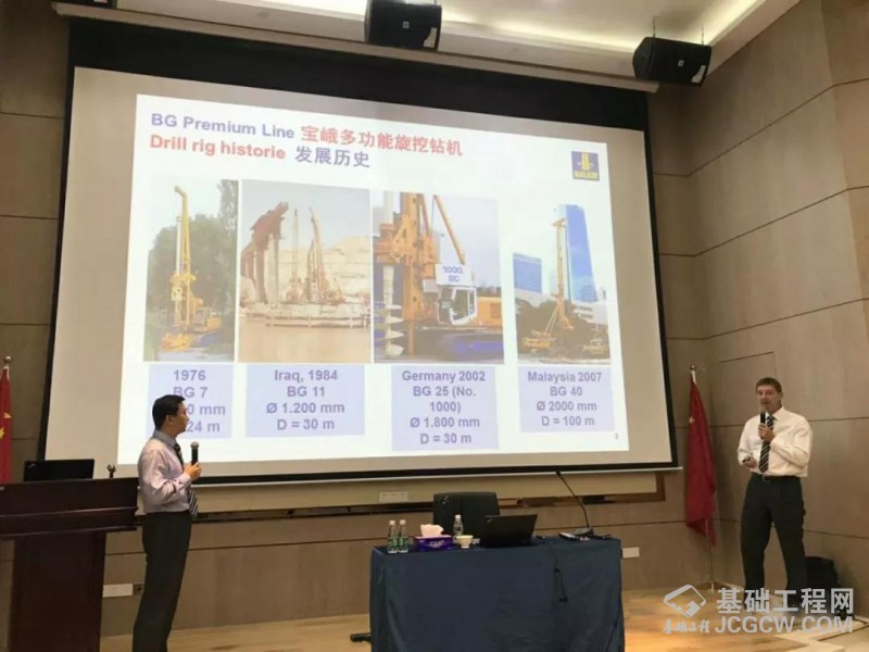 Johann Kraxenberger先生通过本次讲座为广大基础工程行业技术人员介绍了宝峨公司针对不同地层、不同桩型总结提出的多种新型工艺方法以及多功能旋挖钻机相应的不同功能,使得工程技术人员在面对复杂多变的地质情况下,对于采用哪种桩型、使用哪种机械设备、采取哪种施工技术提供了多种新的思路。