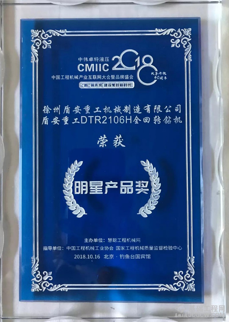本届大会由慧聪工程机械网主办,中国工程机械工业协会、国家工程机械质量监督检验中心倾情指导,是国内具有较大影响力的工程机械品牌盛会,盾安重工DTR2105H全回转钻机在网络人气评选过程中,斩获大会品牌明星产品奖。