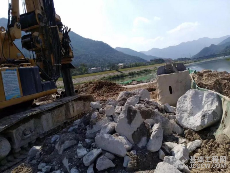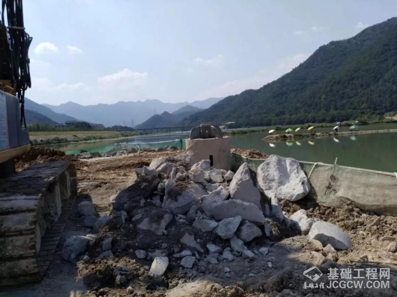 核心提示: 杭绍台高铁赤城跨始丰溪特大桥26#承台持续克岩,要求能抵抗台风暴雨。1.5直径,桩深22米、连续8米以上入岩,粗面质晶屑凝灰岩