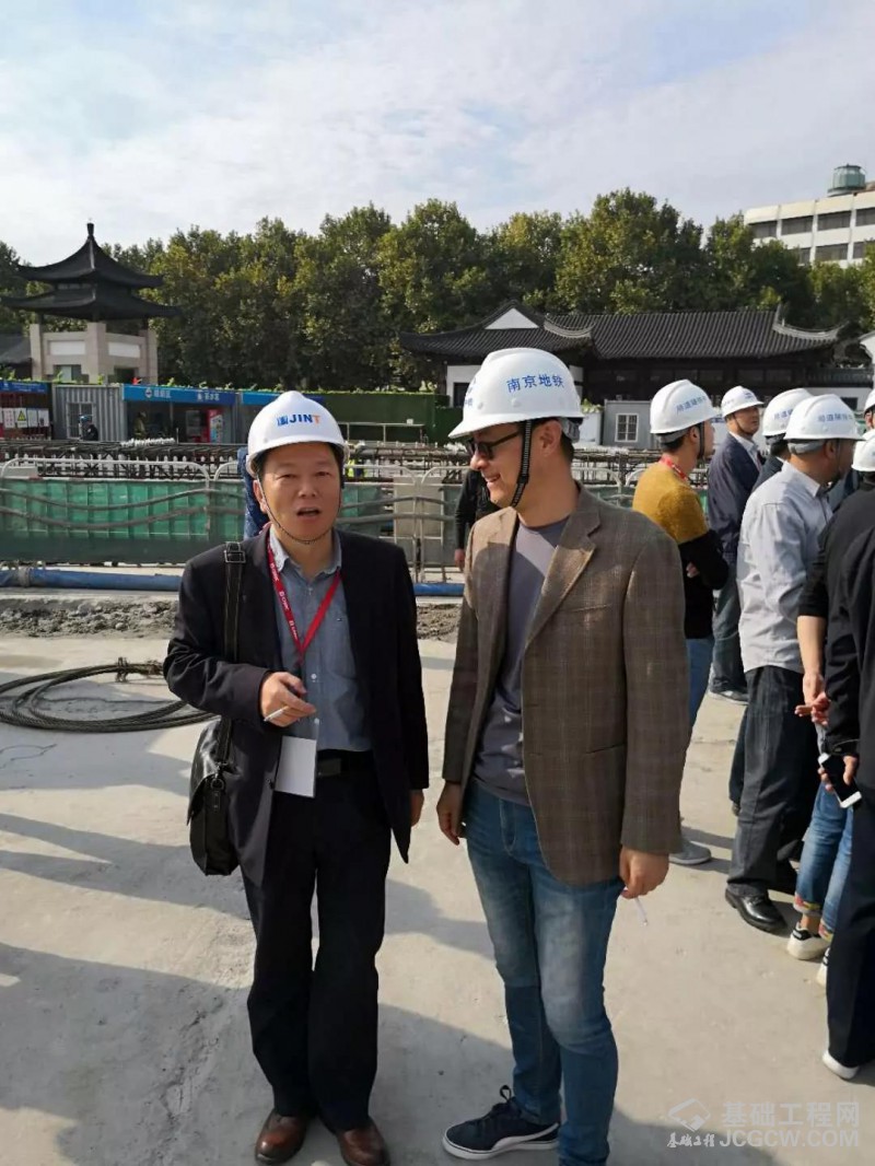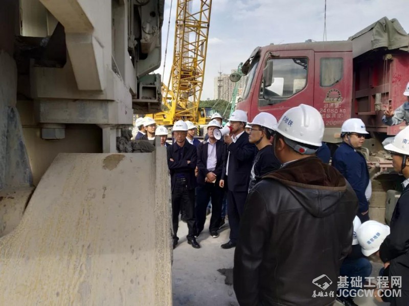19日下午,在组委会的支持协助下,上海金泰组织了近百名参会专家客户到南京地铁7号线-莫愁湖站工地参观SX40双轮铣和SG60A液压抓斗工法演示。本次现场参观考察由上海金泰驻该项目技术服务负责人工法研究所副所长胡君军负责讲解。