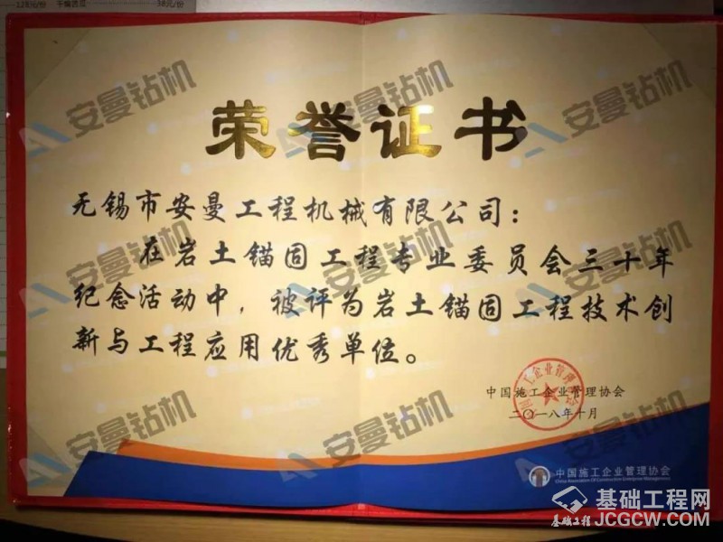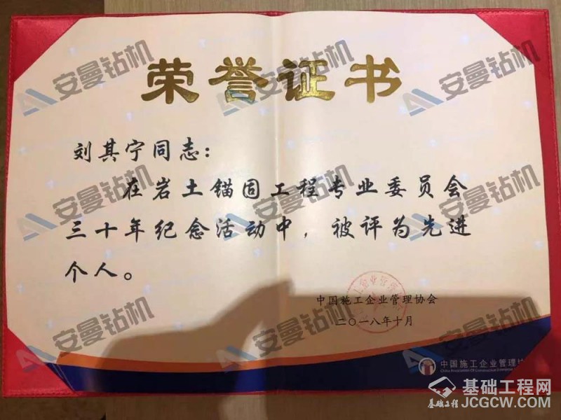 安曼钻机本次被荣幸的评选为锚固工程技术创新与工程应用优秀单位,营销总监刘其宁被评为先进个人,真可谓是双丰收!