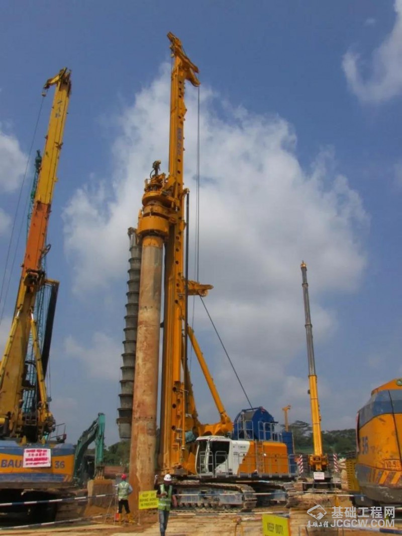 图为宝峨BG 46在新加坡进行直径1280毫米、深22米的CCFA全套管长螺旋施工。
