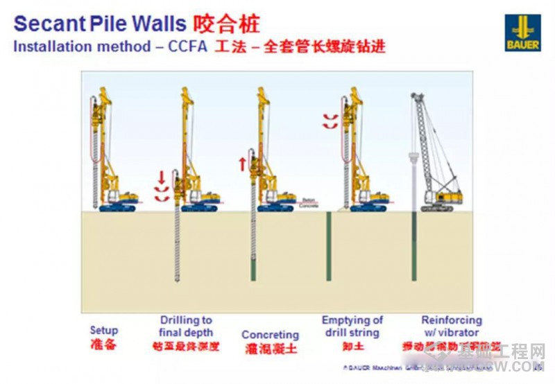 图为宝峨CCFA全套管长螺旋施工的主要步骤。
