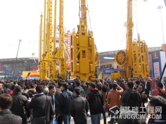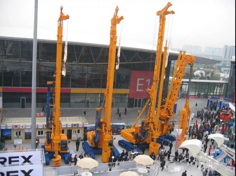 图为2004年上海宝马展,宝峨公司展出的各种型号的旋挖钻机和液压抓斗吸引了大量参观者。