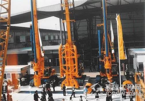 图为2002年,第一届上海宝马展,宝峨公司展出了新型的旋挖钻机、连续墙液压抓斗和多功能钻机。