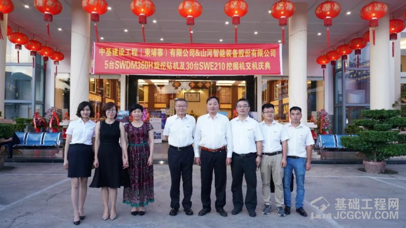 据介绍,此次交机的5台SWDM360H旋挖钻机以及30台SWE210挖掘机是山河智能核心业务中的拳头产品,均代表了行业领先的技术水平。自2017年山河智能与中基建设建立战略合作关系以来,中基建设对山河智能给予了充分的信任,同时也展示了中基建设在柬埔寨桩基础行业超强的业务水平。短短一年多时间里,中基建设与山河智能在桩基础施工、土方挖掘、爆破作业等方面的均形成了合作。现中基建设已拥有山河智能品牌的旋挖钻机、挖掘机、液压钻车等产品近五十台。
