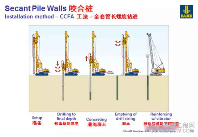 图为宝峨CCFA全套管长螺旋施工的主要步骤。