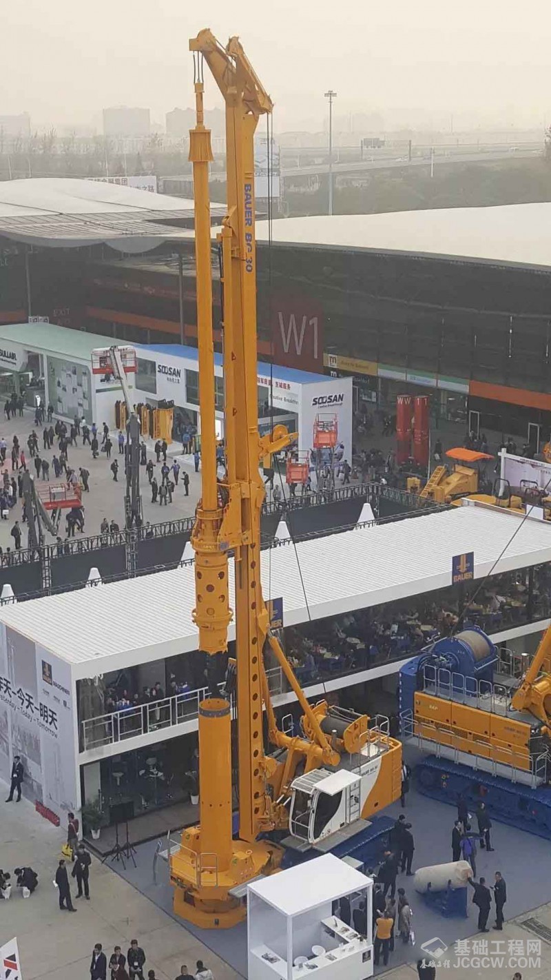 图为现场展示的带BV摇管机系统的宝峨BG 30旋挖钻机。