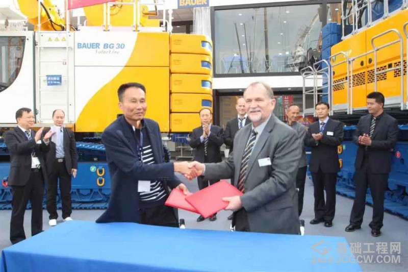 图为Dieter Stetter先生代表德国宝峨与济南益和泰商贸有限公司签订一台BG 30旋挖钻机的购买协议。
