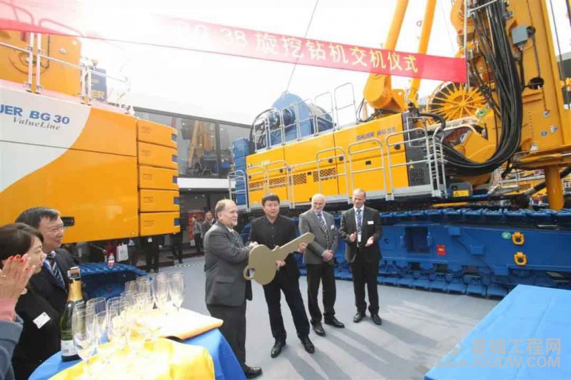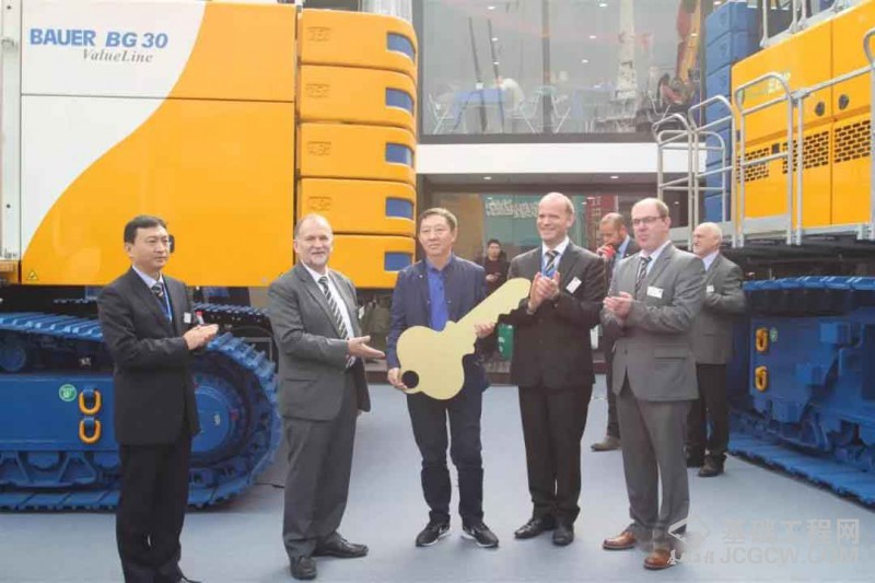 图为Dieter Stetter先生代表德国宝峨向深圳市工勘岩土集团有限公司交付GB 80 S液压抓斗的钥匙。