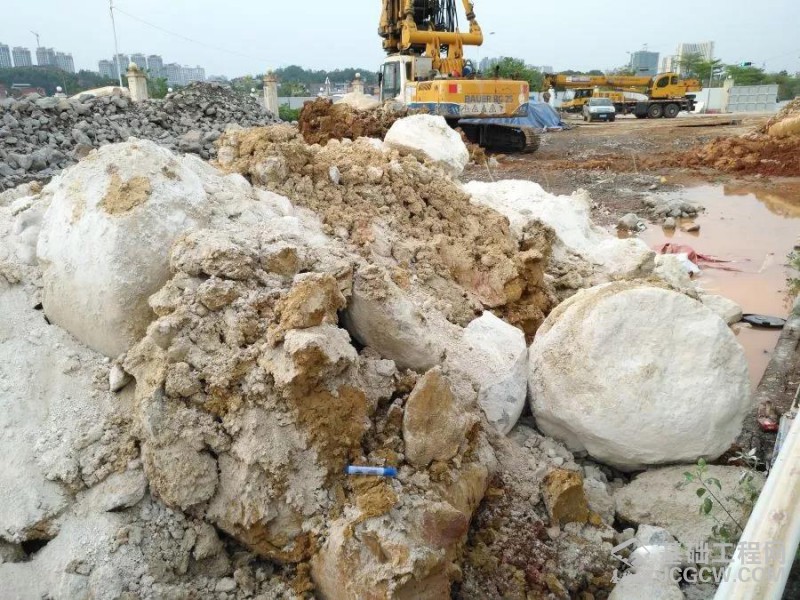 图为宝峨BG 25钻机钻出的大量石灰岩。