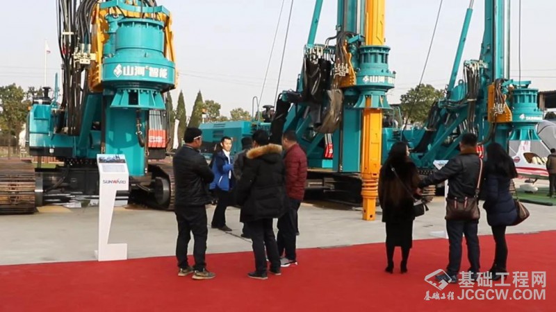 在仪式现场,山河智能SWDM系列旋挖钻机,SWTC系列伸缩臂履带起重机,山河独创的170全自动回转钻机,以及山河科技的阿若拉运动飞机精彩亮相。其中,山河独创的可移动式170全自动回转钻机是首次在交流会上亮相,吸引了到场用户的热切关注。