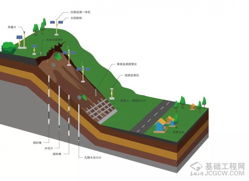 边坡滑坡监测采用无人值守自动化监测,以物联网、互联网、北斗+等技术为理论基础,以自主研发的监测平台及各类传感器为核心,充分利用各种监测手段,建立地表和地下深部的三维立体监测网,对边坡滑坡进行系统、可靠的变形监测。实时监测边坡滑坡不同部位各类型裂缝的发展过程,岩土体松弛以及局部坍塌、沉降、隆起活动;地下、地面变形动态(包括滑坡体变形方向、变形速速、变形范围等);地下水水位、水量、水化学特征变化;树木倾斜和各种建筑物变形状况;降雨以及地震活动等外部环境变化等,据此对边坡滑坡变形发展和变形趋势作出预测,判断其稳定状态给出边坡失稳预警值,指导施工,反馈设计和检验治理效果,了解工程实施后的变化特征,为设计施工及灾害预警提供科学依据。