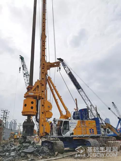 该项目的基础工程中,包含有700根直径1.5米和1.8米,深度80米的桩,这些桩基施工全部由宝峨集团的四台旋挖钻机完成。其中一台宝峨BG 45多功能型钻机,配备了钻杆自动提升下放系统。