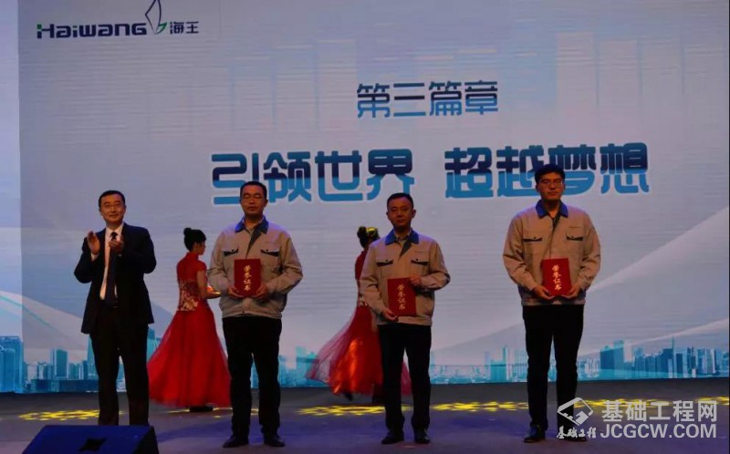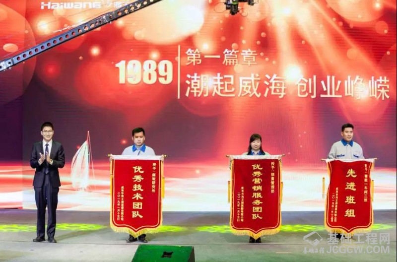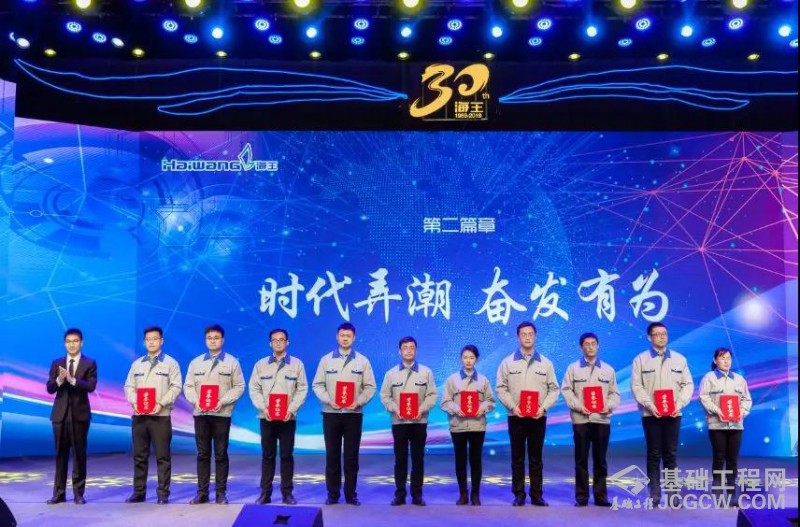 海王公司领导班子成员黄爱秀顾问、孙学强顾问、孙吉鹏董事长、王书礼总经理、崔学奇总工等对30周年特别贡献人物、年度优秀团队、优秀个人颁奖。