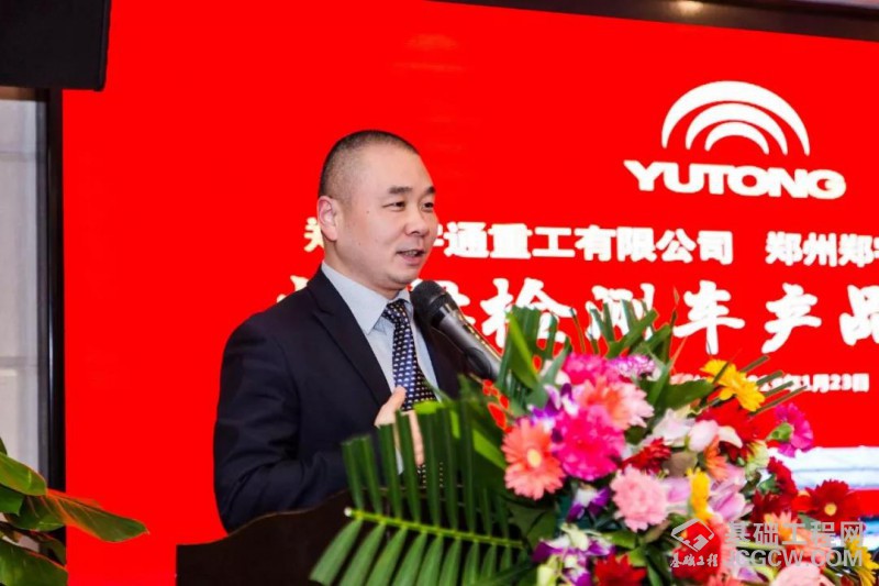 郑宇重工销售公司总经理王增福致辞,王总表示:宇通自2006年涉足桥检车行业,过去的十几年始终坚持“以客户为中心”的经营理念来定位产品,高品质的产品和优良的售后服务,保证客户可以获取最大投入产出比,凭借从建国初期1958建厂至今60余载国有企业和军工企业的传承和积淀,凭借宇通客车的技术实力和研发实力,宇通有能力把产品做好、做精。